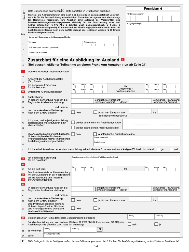 Stand: 2011 Formula drunken Male 1 2 3 4 5 Bitter Zutreffendes ankreuzen Formulate 6. Bitter sorgfltig in Druckschrift Allen. Frderungsnummer Hines: Die Antragstellenden find each 60 Estes Such Sozialgesetzbuch