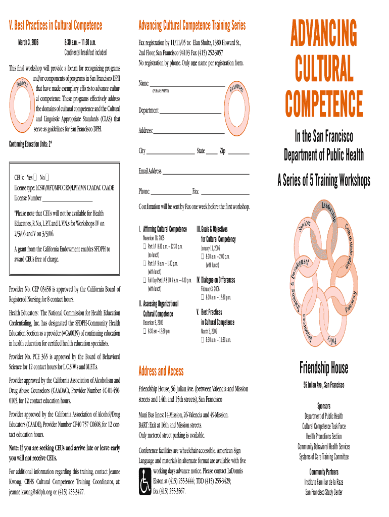 V. Best Practices in Cultural Competence March 3, 2006 8:30 a.m. 11:30 a.m. Continental breakfast included This final workshop will provide a forum for recognizing pro grams and×or components of