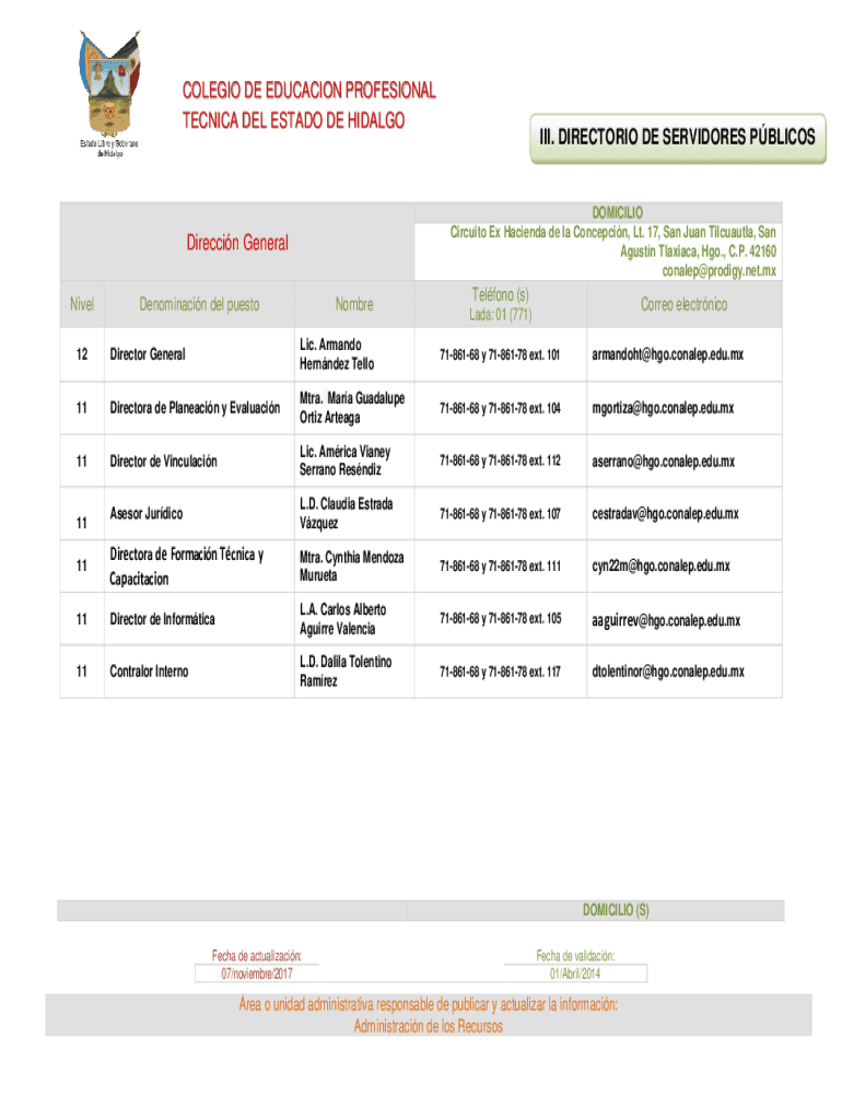 TECHNICAL DEL ESTATE DE HIDALGODOMICILIO