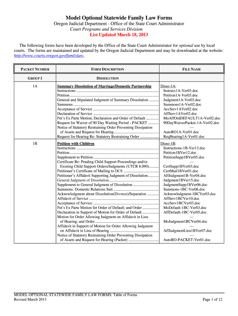 Oregon Family Law Forms are essential legal documents used primarily for the dissolution of marriage, establishing custody arrangements, and determining child support obligations. These forms are maintained by the Oregon Judicial Department, ensuring they meet the necessary legal standards. The documents included in this category comprise petitions, responses, judgments, and affidavits that facilitate various family law proceedings in Oregon.