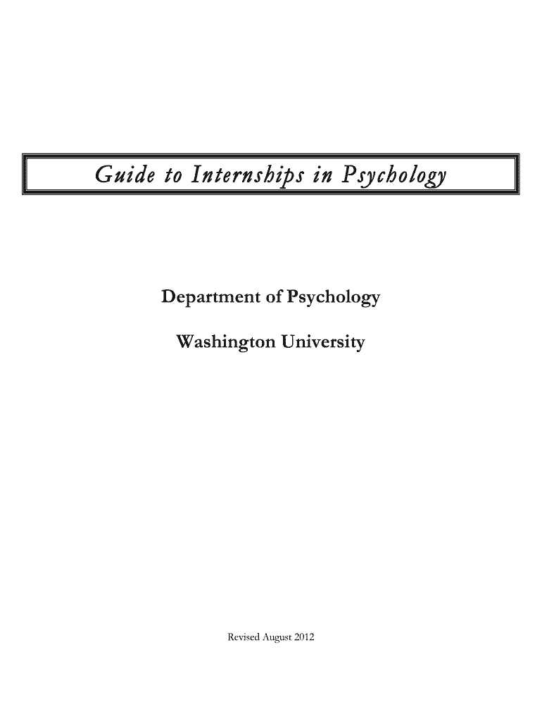 Guide to Internships in Psychology Department of Psychology Washington University Revised August 2012 Guide to Internships in Psychology An internship in psychology gives you an opportunity to apply