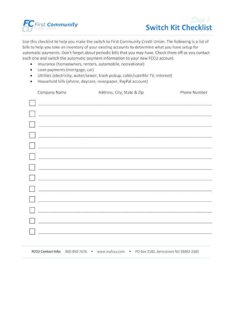 Get the free Switch Kit - First Community CU