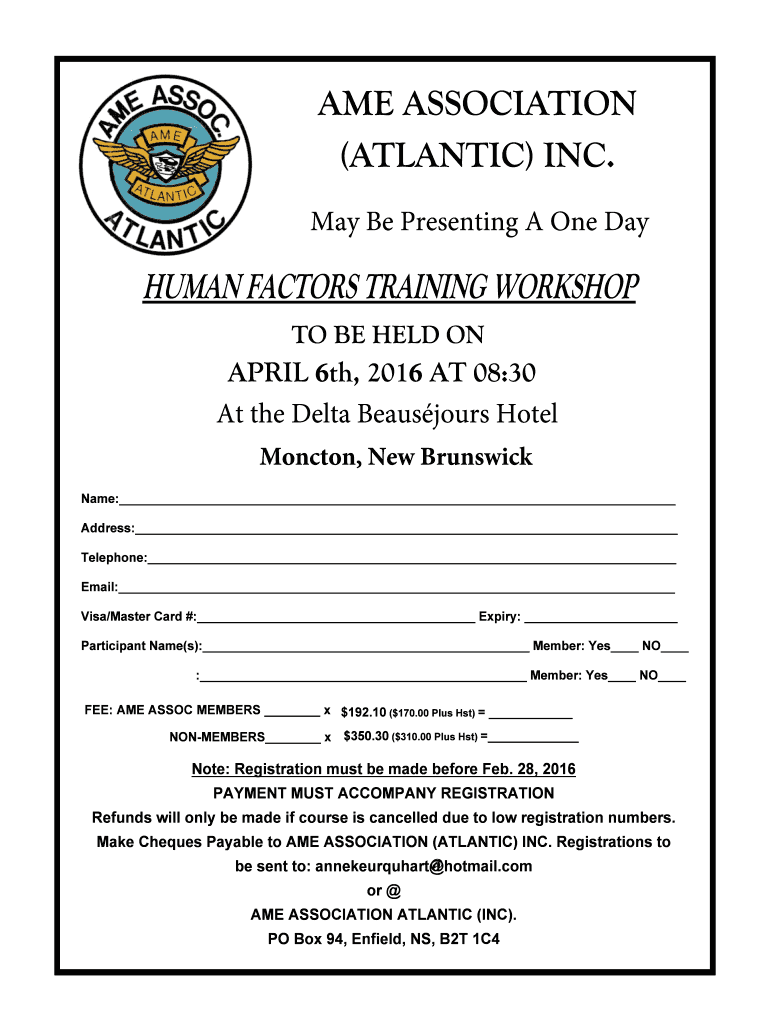 Get the free HUMAN FACTORS TRAINING WORKSHOP - Atlantic AME Association - atlanticame