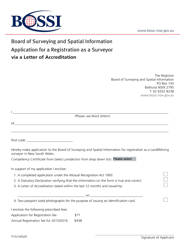 Get the free BBOSSIb Application for a Registration as a Surveyor via LoA - bossi nsw gov