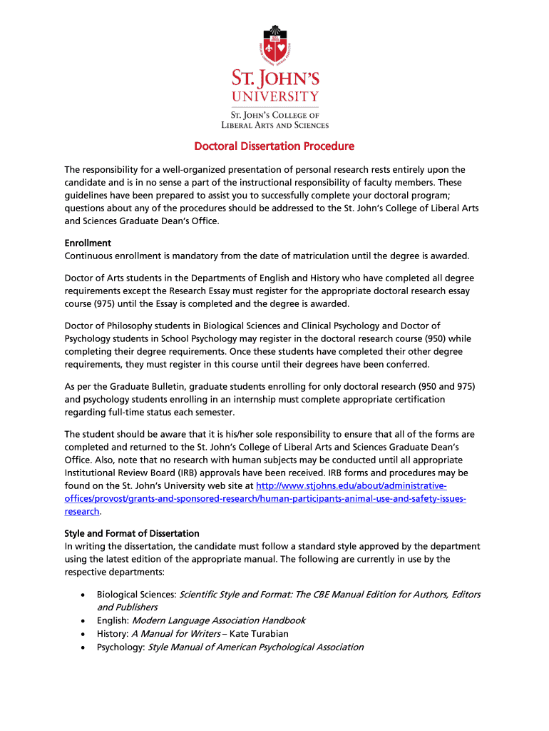 All graduate students pursuing a doctoral degree are required to file a doctoral dissertation procedure.