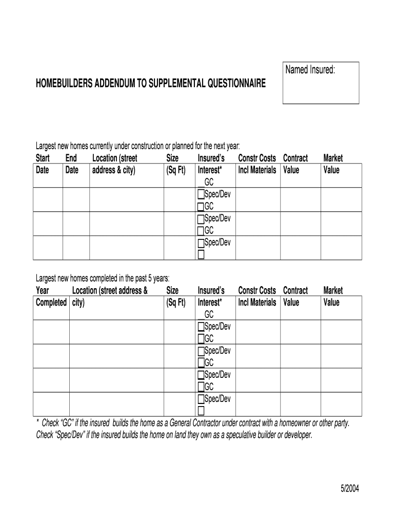 Get the free Named Insured HOMEBUILDERS ADDENDUM TO SUPPLEMENTAL