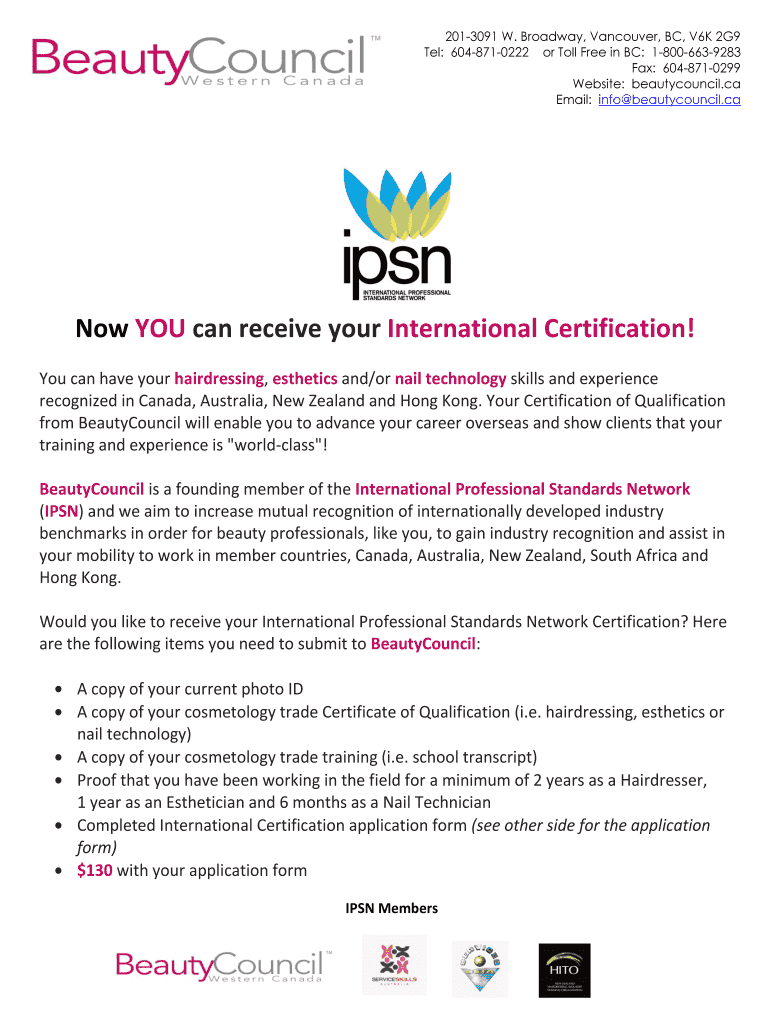 2013091 W. Broadway, Vancouver, BC, V6K 2G9 Tel: 6048710222 or Toll Free in BC: 18006639283 Fax: 6048710299 Website: beauty council.ca Email: info beauty council.ca Now YOU can receive your International