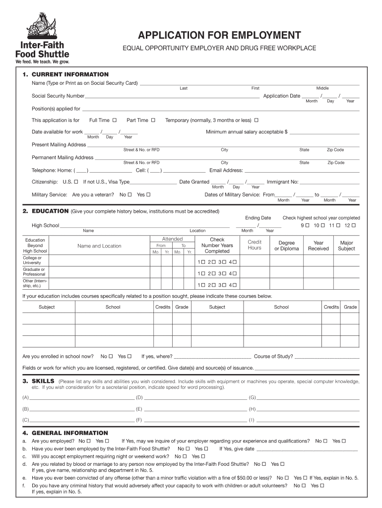 Get the free APPLICATION FOR EMPLOYMENT - Inter-Faith Food Shuttle