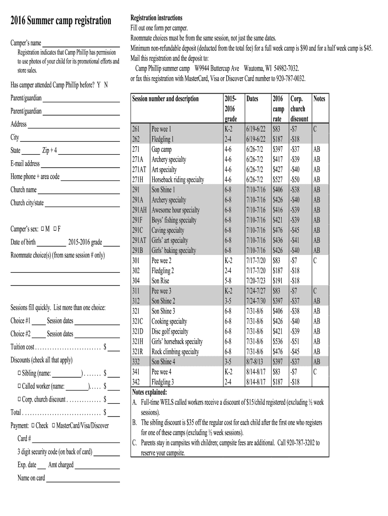 2016 Summer camp registration Camper s name Registration indicates that Camp Phillip has permission to use photos of your child for its promotional efforts and store sales. Has camper attended Camp