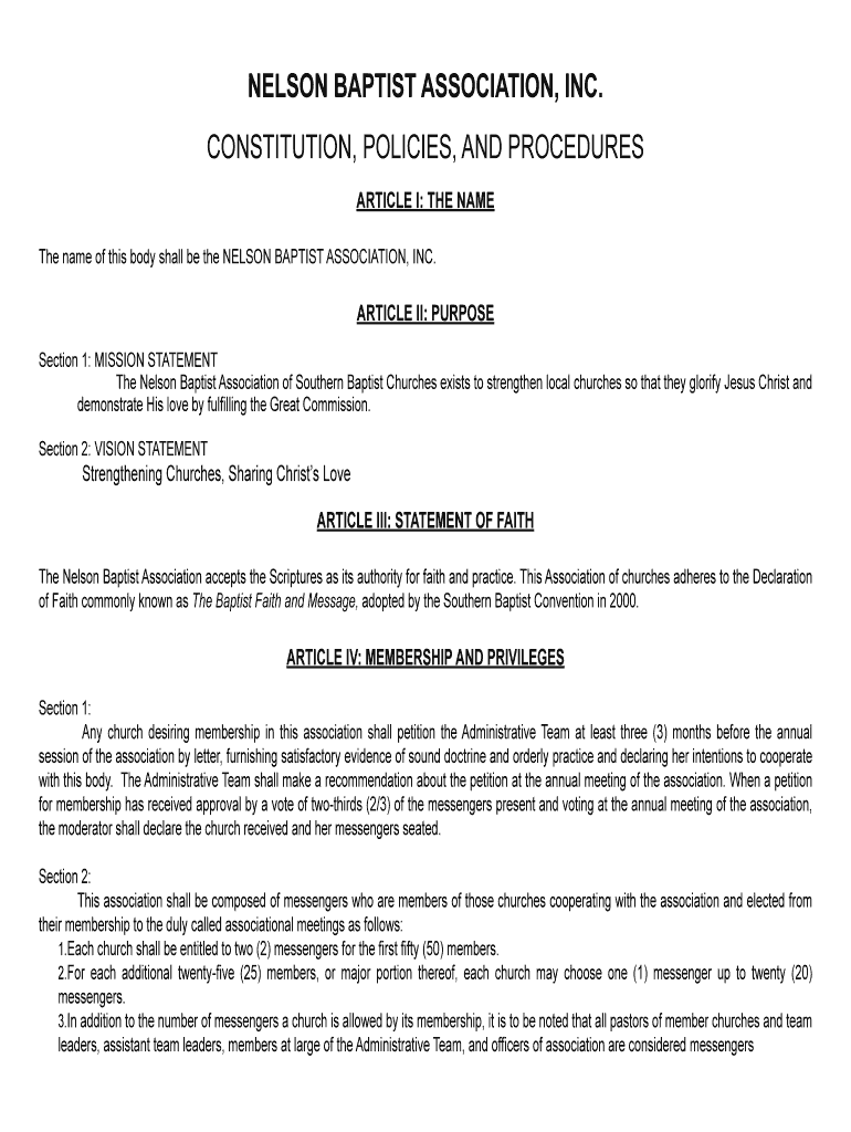 Get the free NELSON BAPTIST ASSOCIATION Bylaws and Constitution Updated 122014 landscape