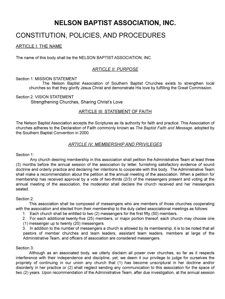 Get the free NELSON BAPTIST ASSOCIATION Bylaws and Constitution