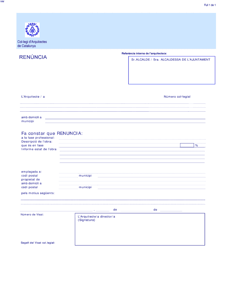 Get the free Ren ncia - Col legi d'Arquitectes de Catalunya - coac