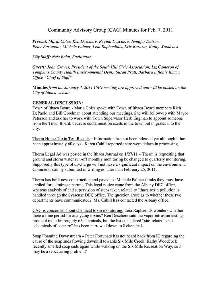 Get the free Community Advisory Group (CAG) Minutes for Feb. 7, 2011