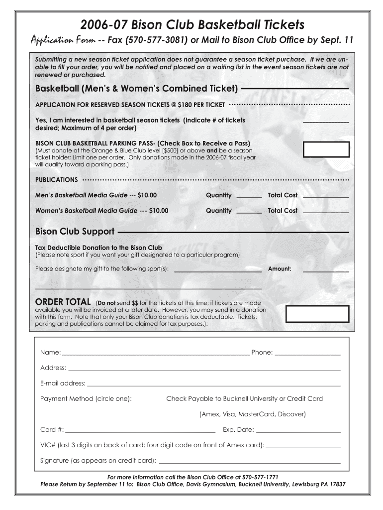 How to fill out 2006-07 Bison Club Basketball Tickets