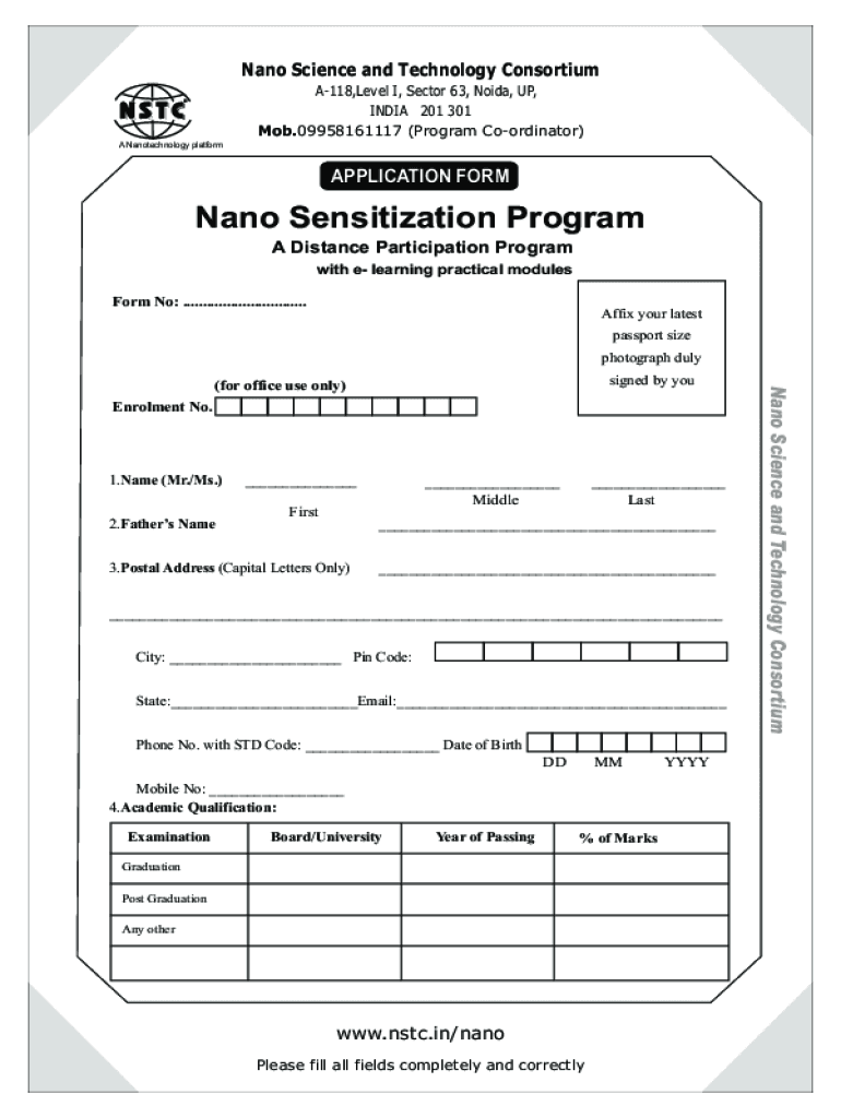 NATO Science and Technology Consortium A118,Level I, Sector 63, Noida, UP, INDIA 201 301 Mob.09958161117 (Program Coordinator×N S TC A Nanotechnology platformAPPLICATION Forman Sensitization Program