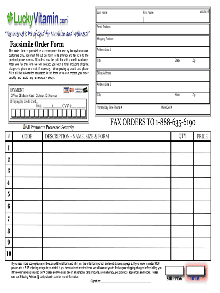 This order form is provided as a convenience for use by LuckyVitamin.com