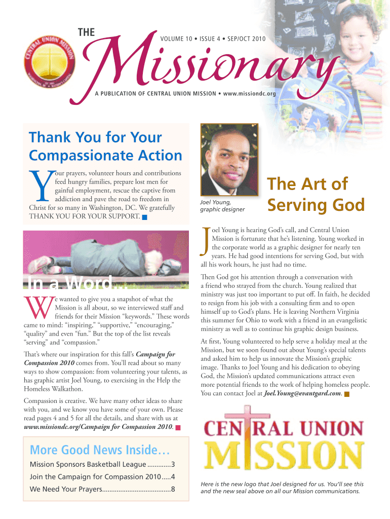 The Volume 10 issue 4 SEP×OCT 2010 A Publication of CENTRAL UNION MISSION www.missiondc.org Thank You for Your Compassionate Action Y our prayers, volunteer hours and contributions feed hungry families,