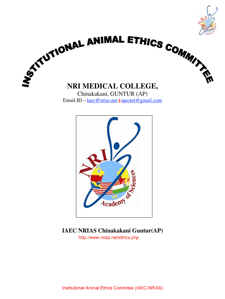 NRI MEDICAL COLLEGE, Chinakakani, GUNTUR (AP) Email. ID IEC arias.net, & Henri gmail.com IEC ARIAS Chinakakani Guntur×AP) HTTP://www.nrias.net×ethics.php Institutional Animal Ethics Committee (IAECNRIAS)