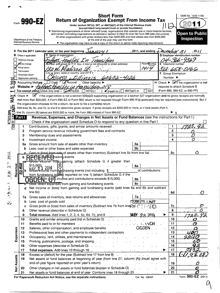 ' V, Form Short Form Return of Organization Exempt From Income Tax 990 EZ OMB No 15451150 P 1 1 Under section 501×c), 527, or 4947 ×a)(1) of the Internal Revenue Code (except black lung benefit