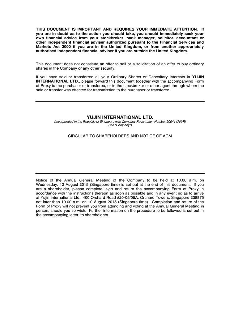 THIS DOCUMENT IS IMPORTANT AND REQUIRES YOUR IMMEDIATE ATTENTION. If you are in doubt as to the action you should take, you should immediately seek your own financial advice from your stockbroker,
