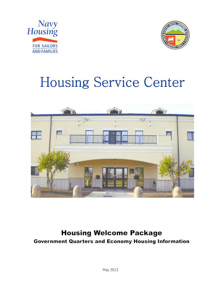 Housing Service Center Housing Welcome Package Government Quarters and Economy Housing Information May 2013 HOUSING SERVICE CENTER Hours of Operation Support Site Main Office Showing Services / Referral