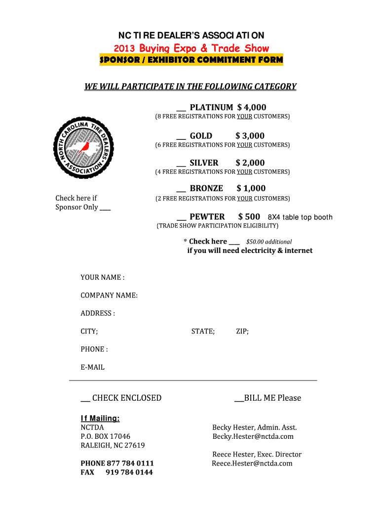 Get the free NCTDA 2013 Buying Expo & Trade Show Sponsor/Exhibitor Commitment Form