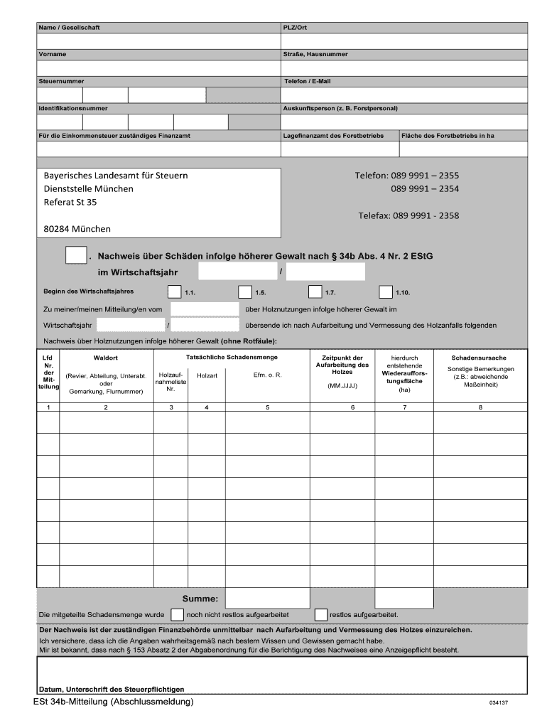 Holen Sie sich kostenlos Nachweis ber Schden infolge hherer Gewalt nach 34b Abs 4 Nr 2 EStG Vordr...