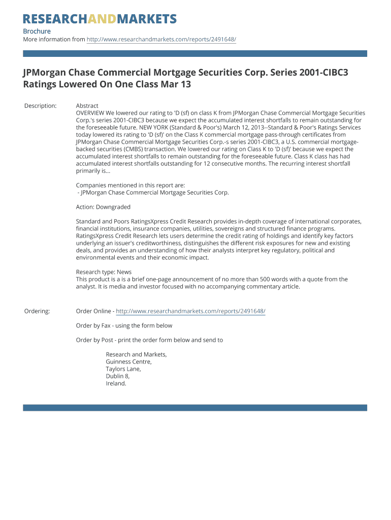 This document provides an announcement regarding the downgrade in the rating of Class K commercial mortgage pass-through certificates from JPMorgan Chase Commercial Mortgage Securities Corp.'s series