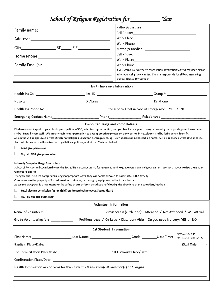 Get the free School of Religion Registration for Year - SHOJ