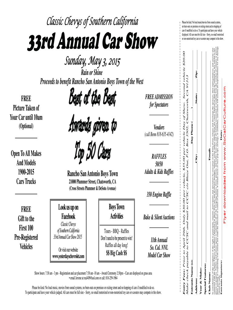 33rd Annual Car Show Sunday, May 3, 2015, Rain or Shine Proceeds to benefit Rancho San Antonio Boys Town of the West FREE Picture Taken of Your Car until 10am FREE ADMISSION for Spectators (Optional)
