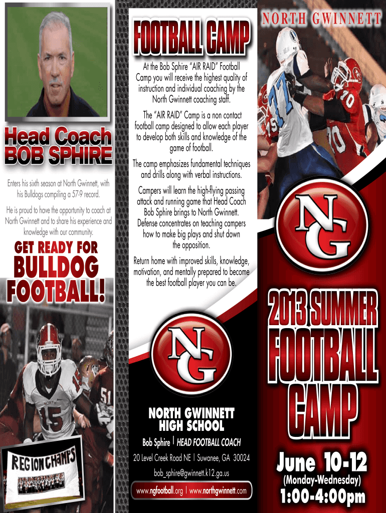 FOOTBALL CAMP NORTH GWINNETT At the Bob Sphere AIR RAID Football Camp you will receive the highest quality of instruction and individual coaching by the North Gwinnett coaching staff. Head Coach Bob