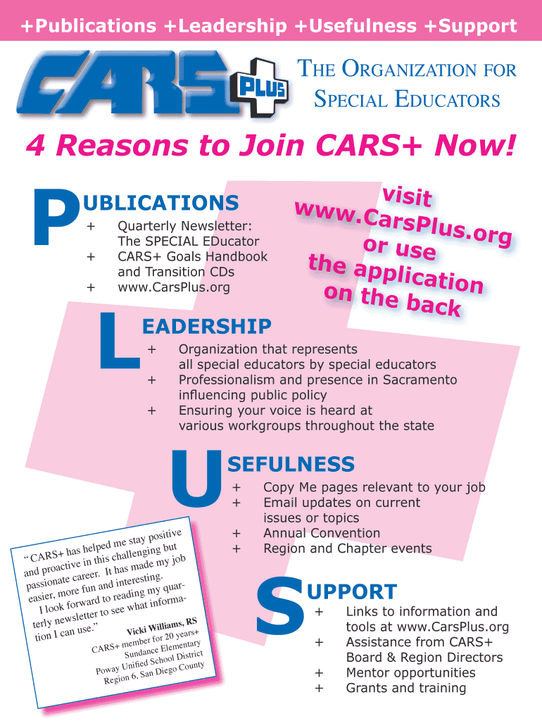 The CARS+ Membership Application targets special educators in California who are seeking a community of support and resources. Individuals holding the appropriate California teaching credentials can apply and must meet specific eligibility criteria.