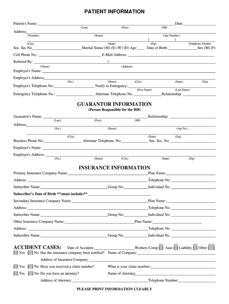 Get the free Patient information guarantor information insurance information