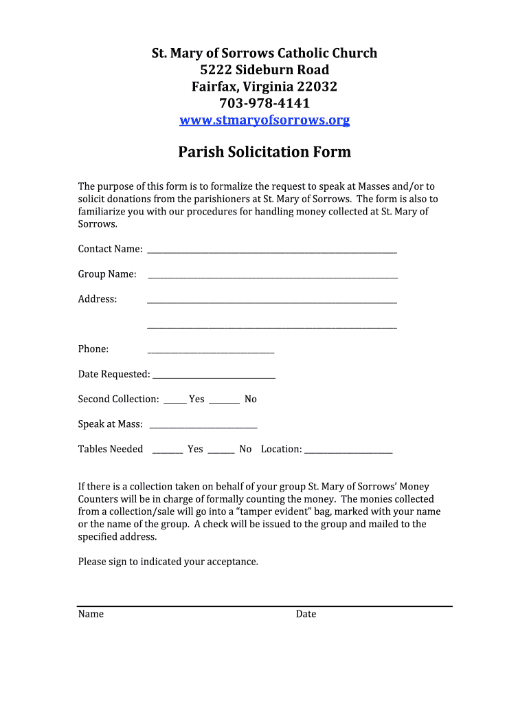 Get the free Parish Solicitation Form - Saint Mary of Sorrows - stmaryofsorrows