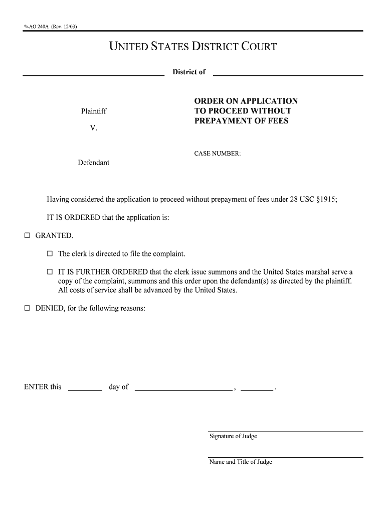 Obtain Form AO 240A from the official website or relevant court office.