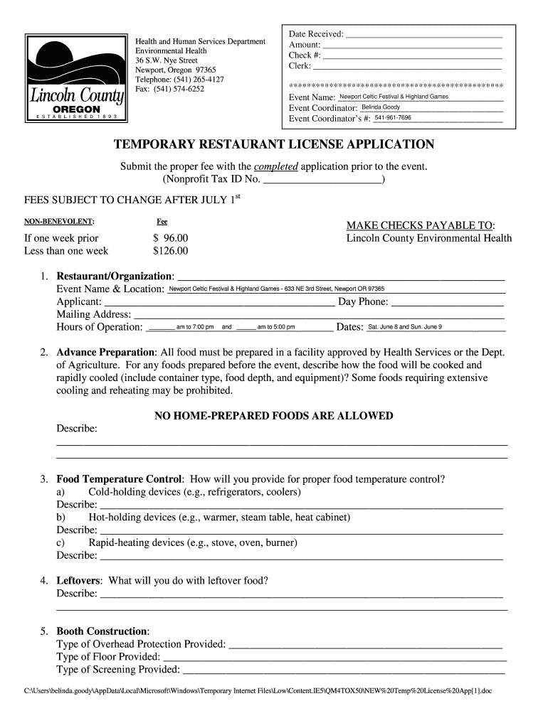 How to fill out temporary restaurant license application?