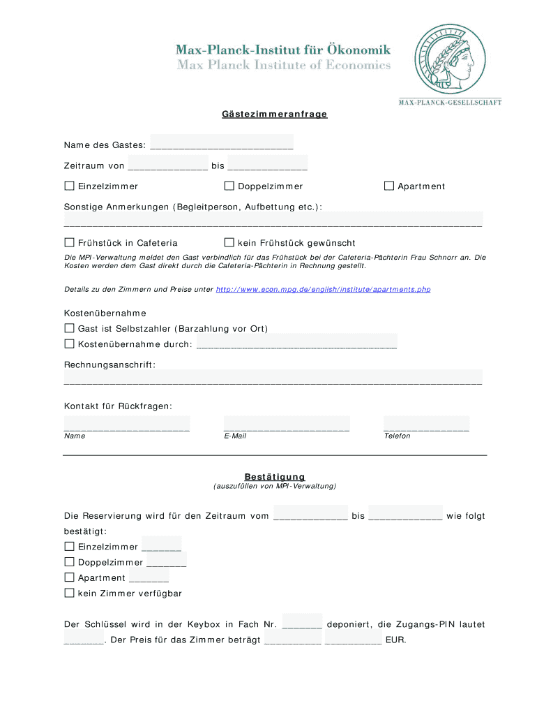 Gstezimmeranfrage Name DES Gates: Latham on bis Einzelzimmer Doppelzimmer Apartment Onstage Anmerkungen (Begleitperson, Abetting etc.): Frost in Cafeteria Kan Frost goons Die MPIVerwaltung melded