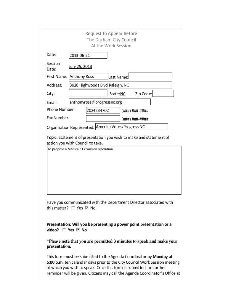 Get the free BRequestb to Appear Before The Durham City bb - City of Durham - durhamnc