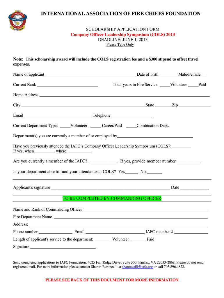 Get the free Note This scholarship award will include the COLS registration fee and a $300 stipen...