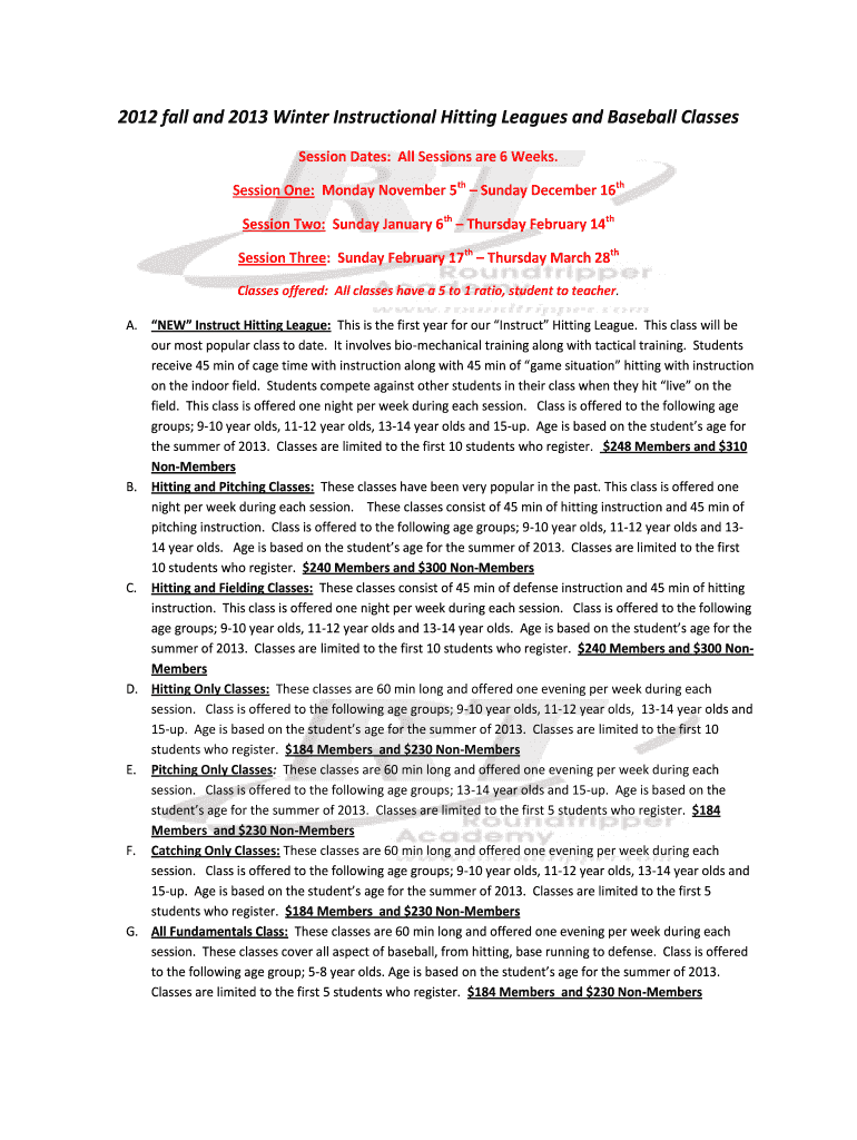 Get the free 2012 fall and 2013 Winter Instructional Hitting Leagues and Baseball Classes Session...