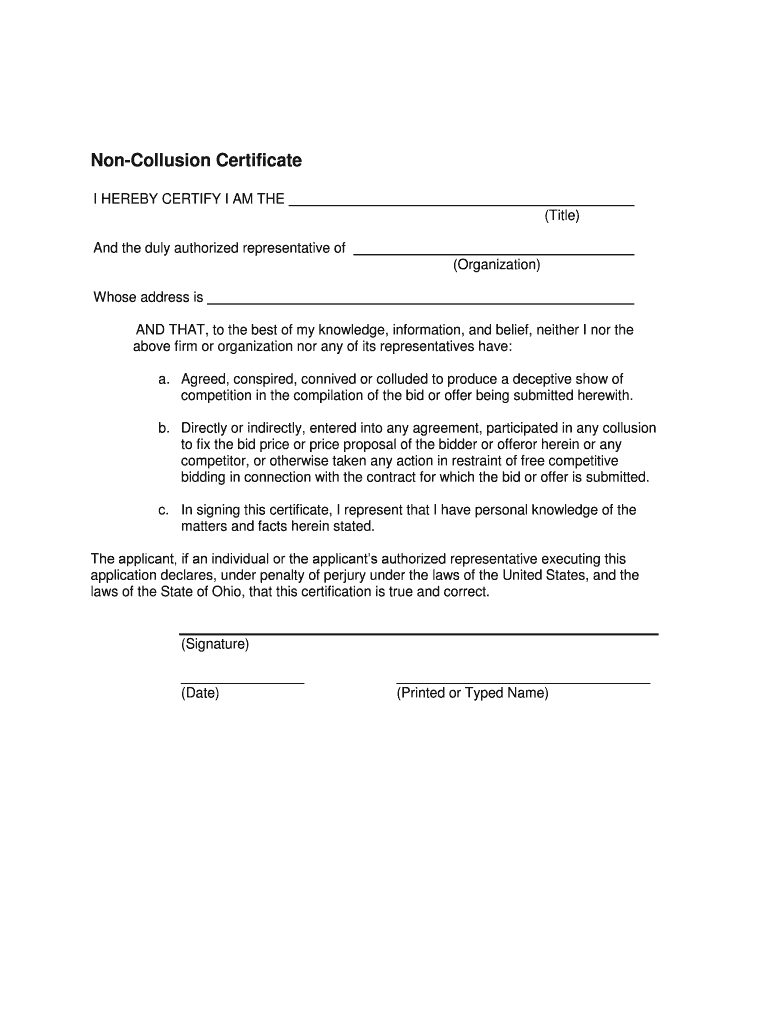 Get the free Non-Collusion Certificate