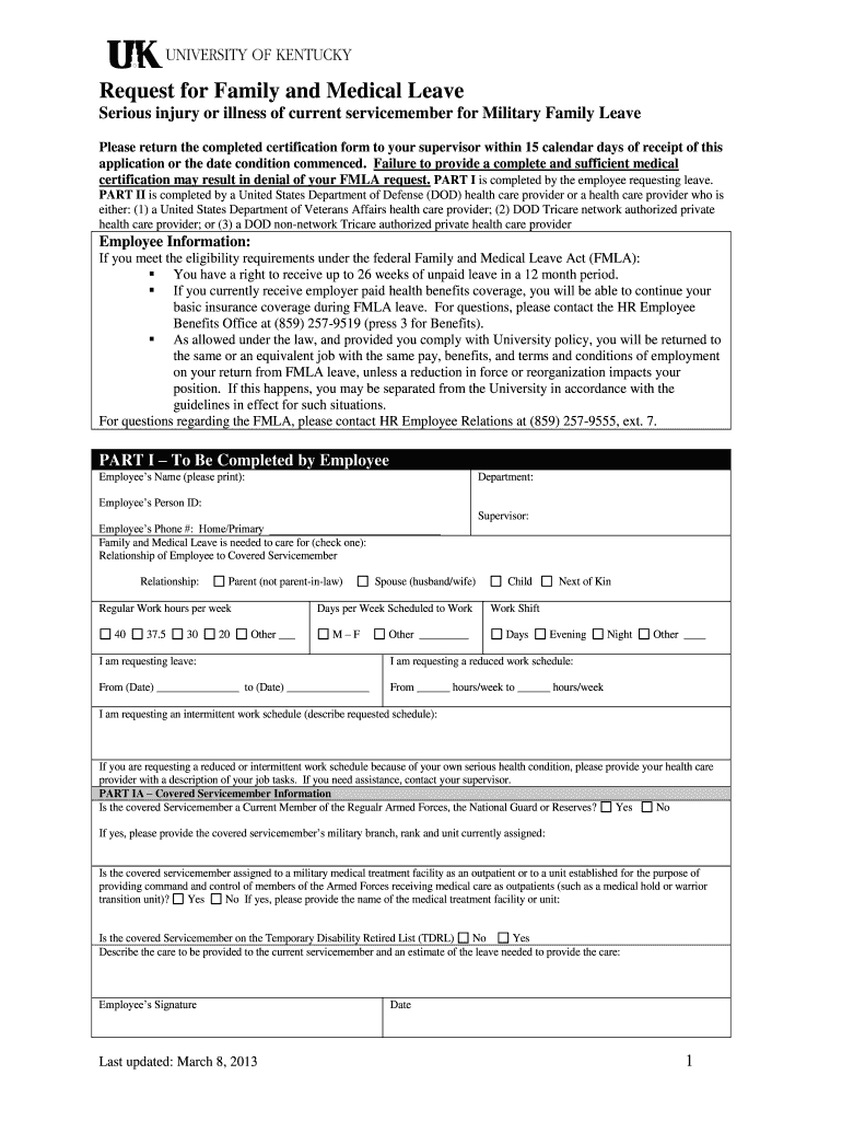 Get the free Serious injury or illness of current servicemember for Military Family Leave - uky edu