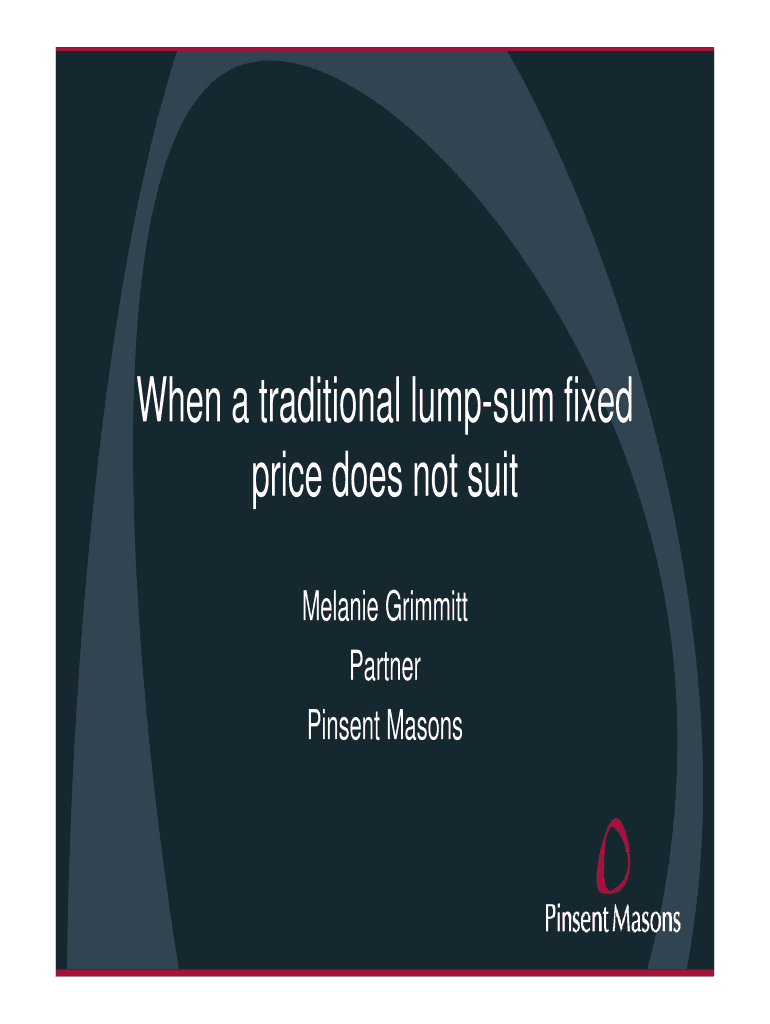 When a traditional lump sum fixed price does not suit Melanie Grim mitt Partner Pin sent MasonsOutcomes What do we mean by a traditional lump sum fixed price contract? When might it not suit? Some