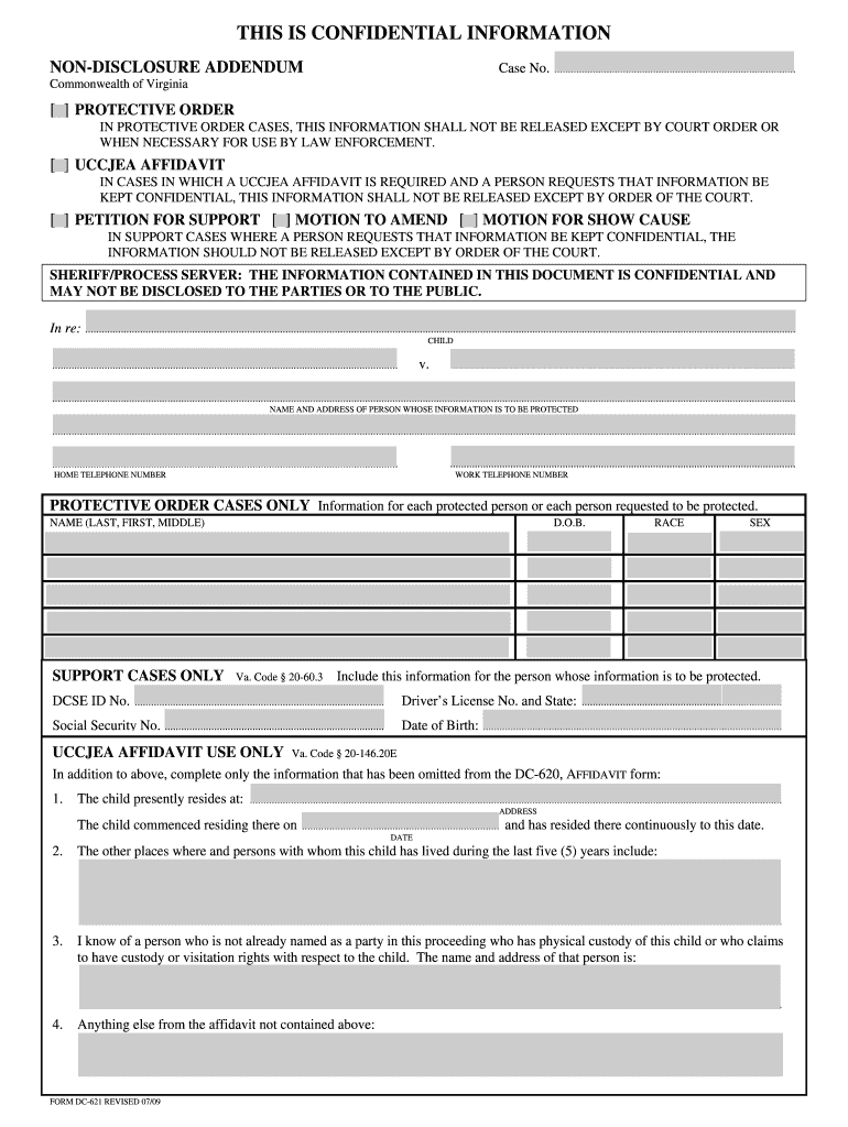 The Virginia Non-Disclosure Addendum is a legal document used by parties in Virginia to protect confidential information in court cases, particularly in protective order and support cases.
