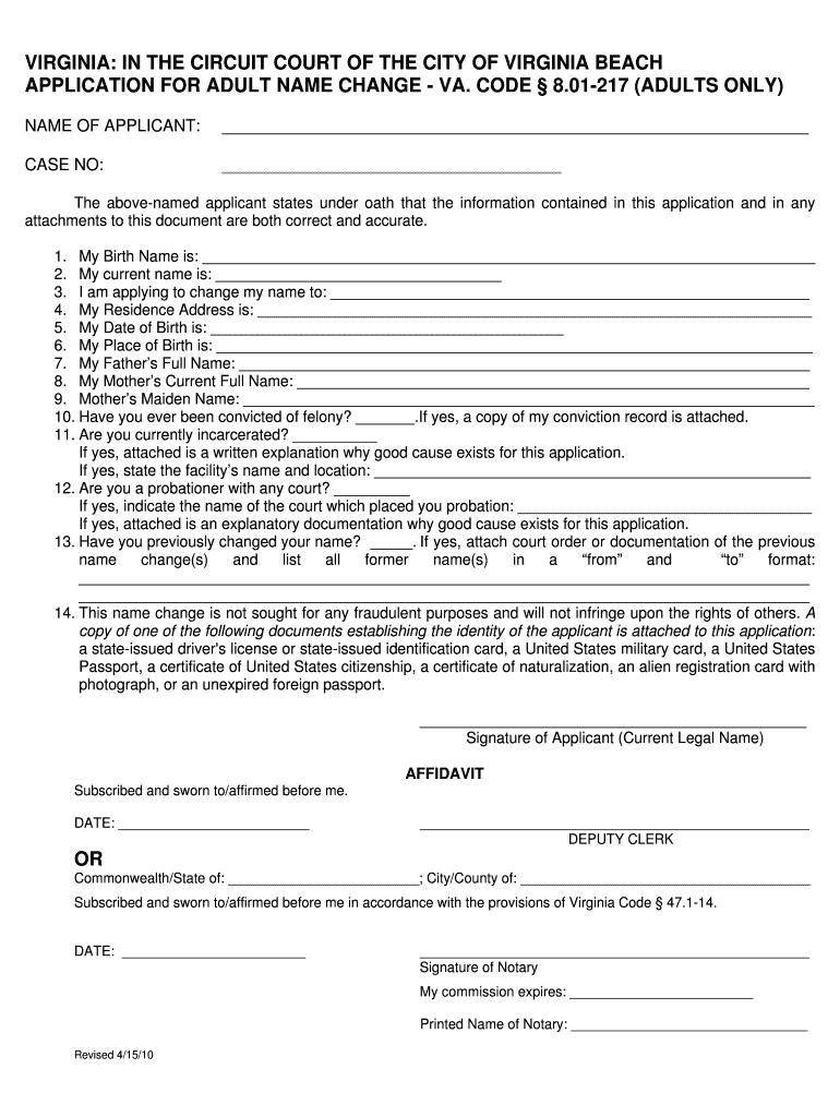 Get the free Virginia Adult Name Change Application