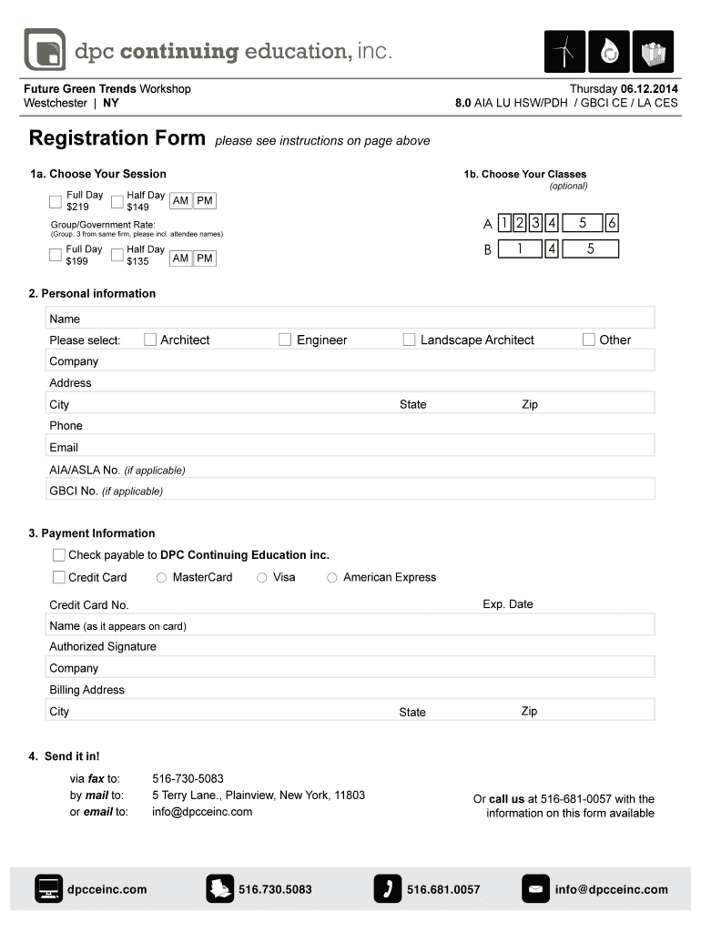 Future Green Trends Workshop Westchester NY Thursday 06.12.2014 8.0 AIR LU HOW×PDH / GBC ICE / LA CES How to submit the Registration Form: (Because saving it in the browser will lose the information.