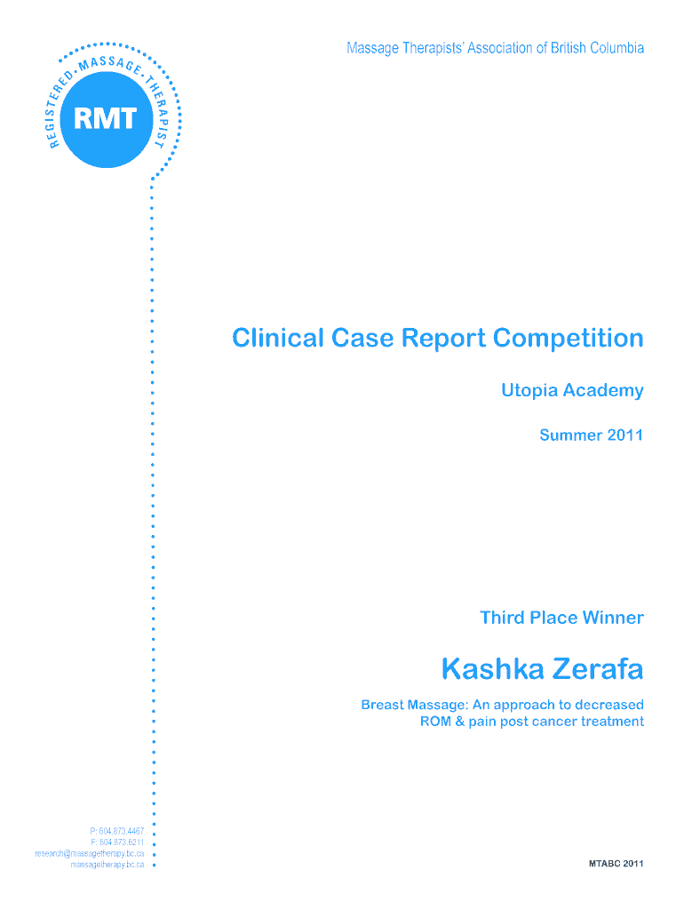 Massage Therapists Association of British ColumbiaMassage Therapists Association of British ColumbiaClinical Case Report Competition Utopia Academy Summer 2011Third Place WinnerKashka Seraph Breast