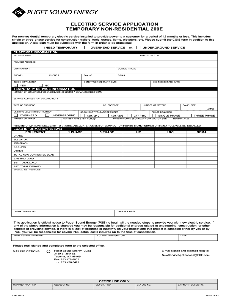 How to fill out the temporary non-residential electric service
