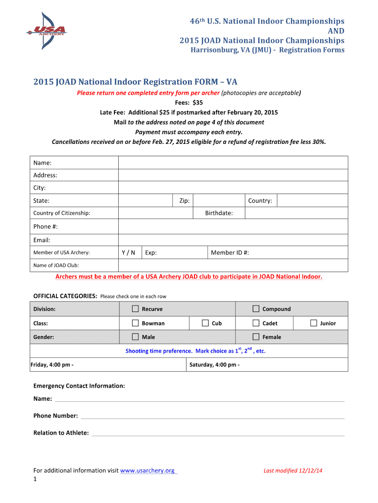 Get the free VA 2015 Indoor Registration Forms - webpoint usarchery