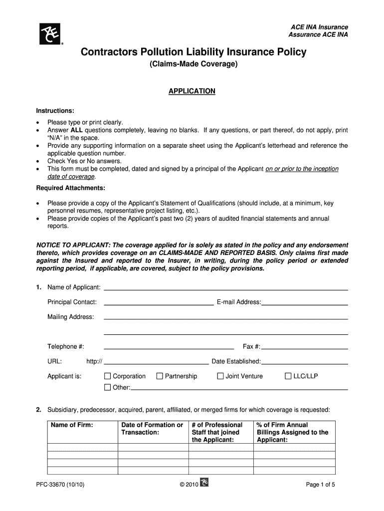 Eligibility typically includes contractors and businesses seeking pollution liability insurance coverage. Ensure that you meet any specific requirements outlined by your insurance provider or broker.